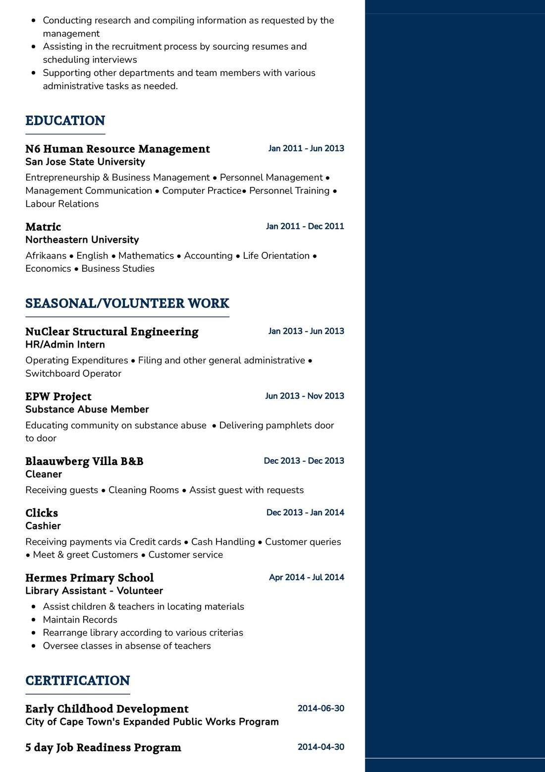 - Include any relevant internships or volunteer work that demonstrates your administrative skills and work ethic.