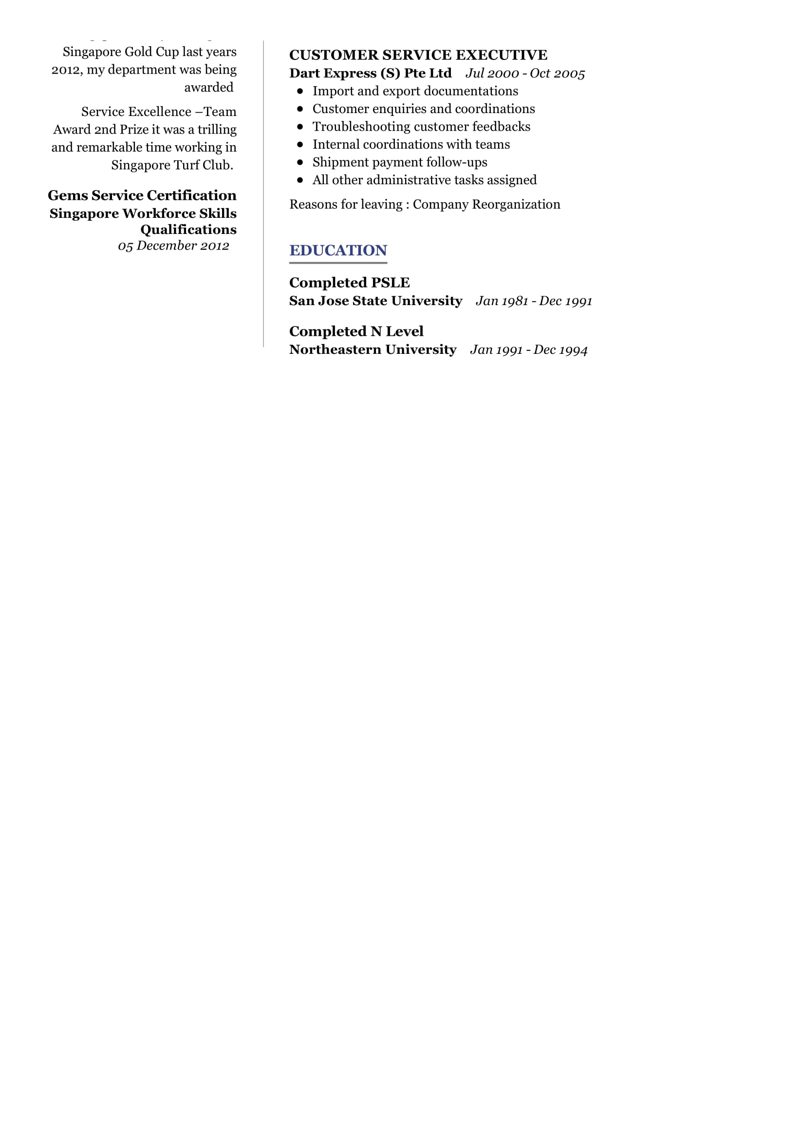 Work Experience: This section should feature your most relevant job experiences, including the duties and responsibilities associated with each role. Be sure to include the name of your former employers, dates of employment, and any awards or accomplishments you achieved during your time at the job.