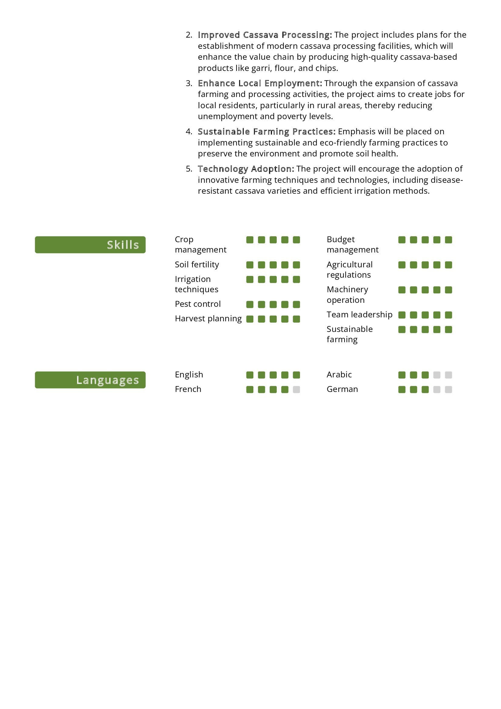 - Highlight your leadership roles, showcasing instances where you have effectively managed agricultural operations and led teams to success.