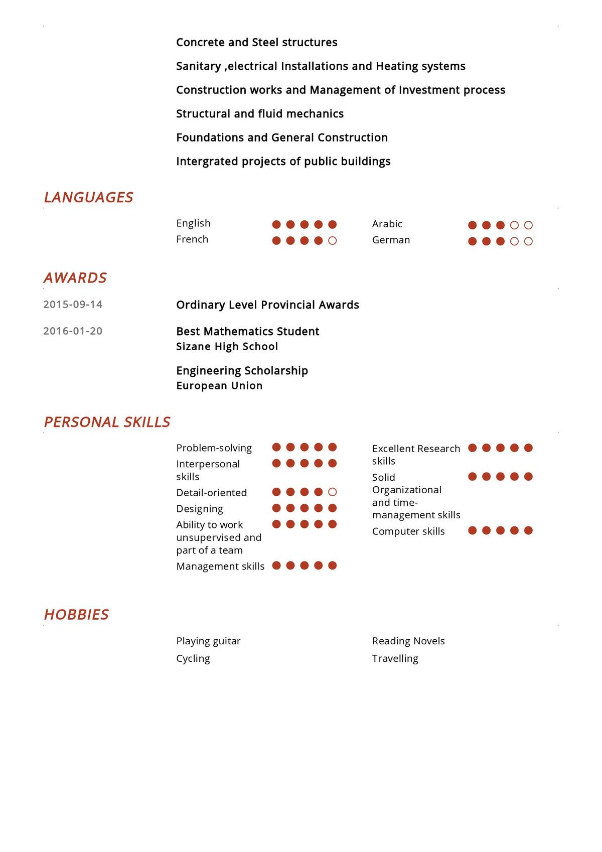 - Soft skills: Include any interpersonal skills, such as communication and problem-solving, that are relevant for a civil engineer position.