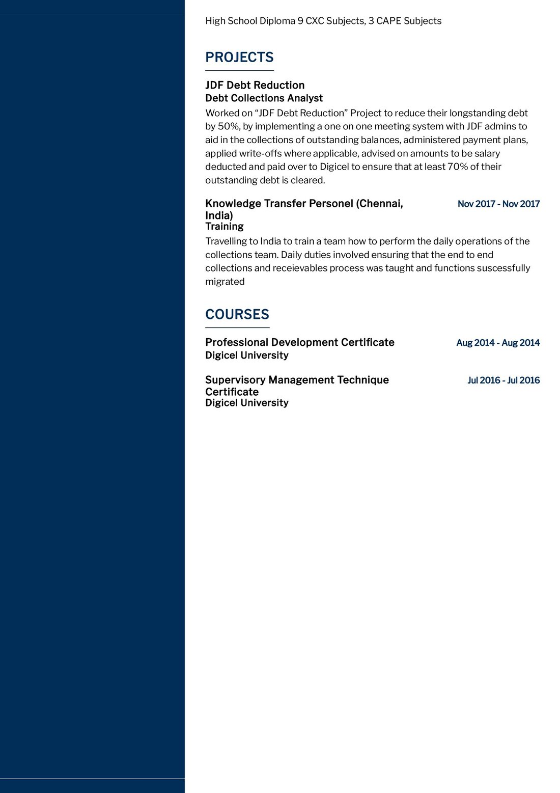 - Proven experience in credit and collections, showcasing a trajectory of growth and learning.