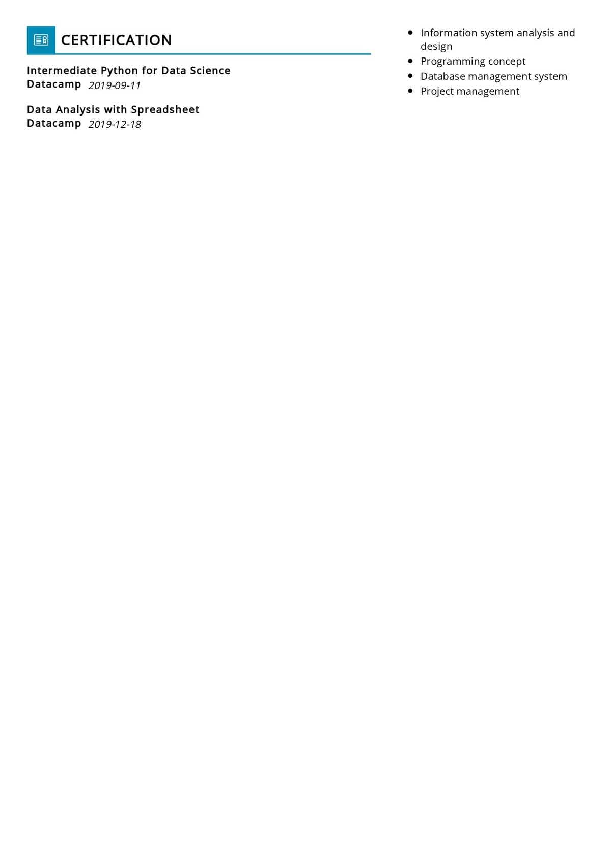 - A data analyst should not leave out any information on their resume and should write it carefully.