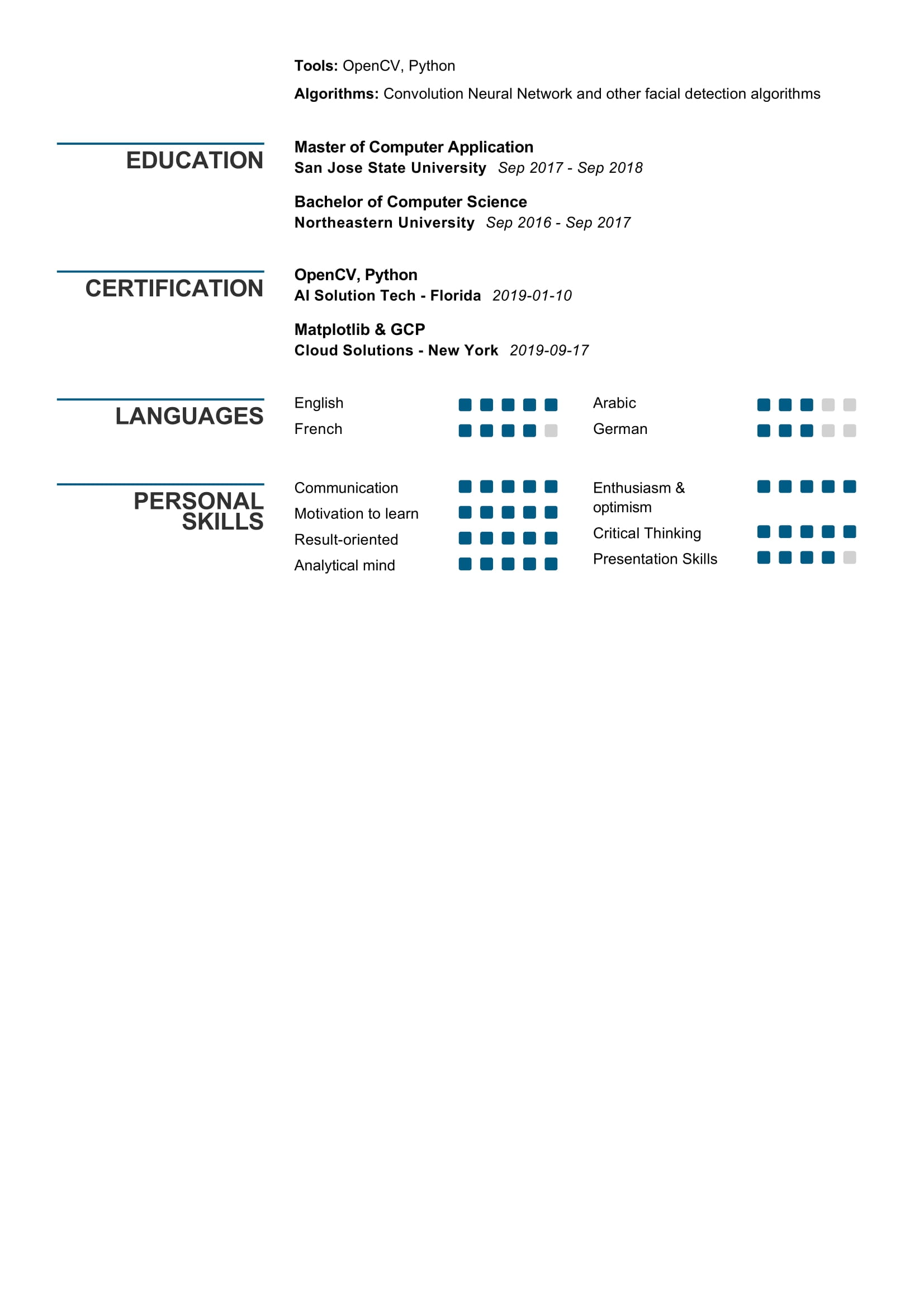 Data Science Skills Resume