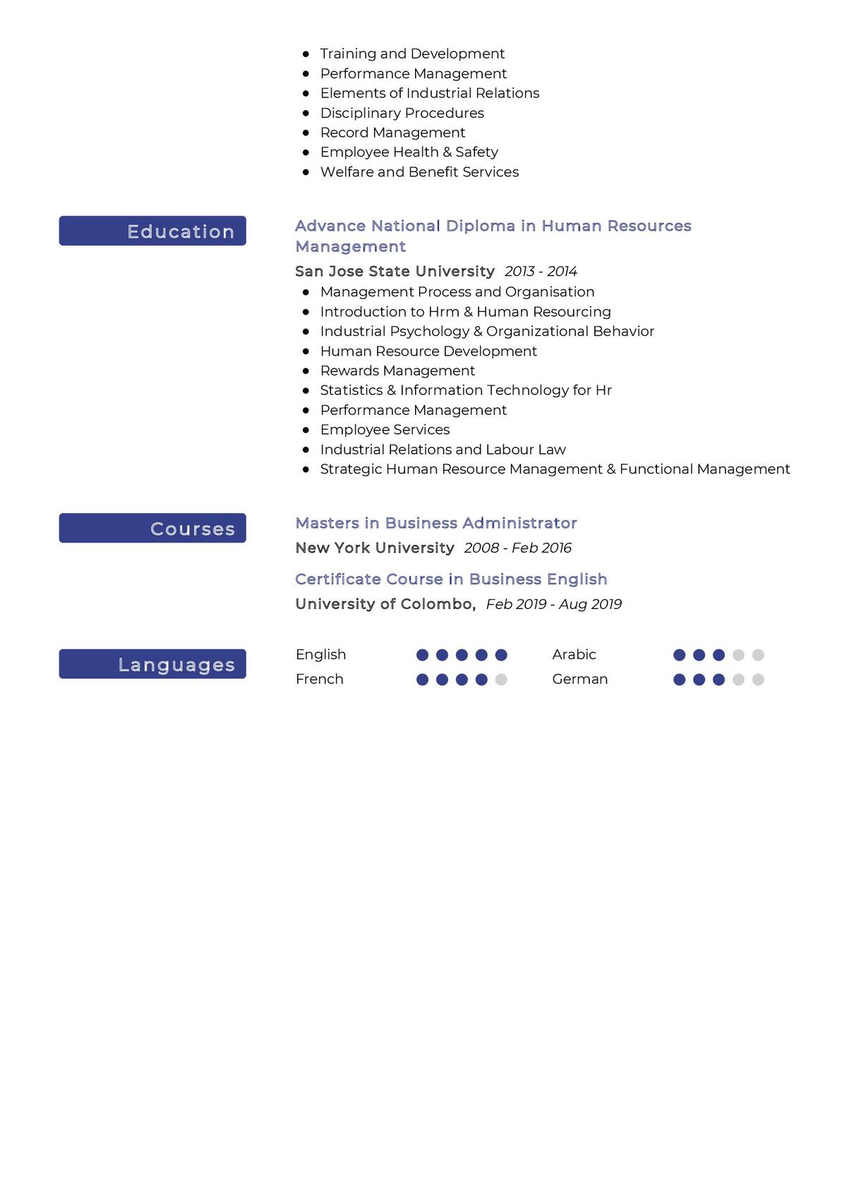 Another important component of a good executive human resources management resume is a list of professional experience. This should include a detailed history of the positions you have held, including the duties and responsibilities of each role. Additionally, it is important to include any awards, accomplishments, or special projects you have worked on.
