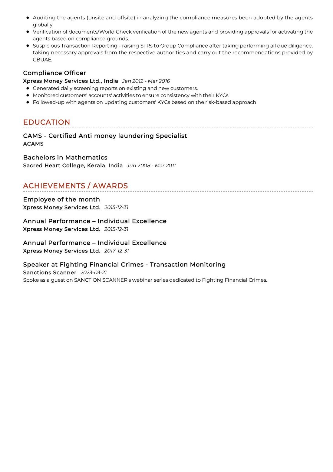 - Experience in utilizing financial surveillance software and tools, demonstrating the ability to leverage technology for effective risk management and fraud detection.