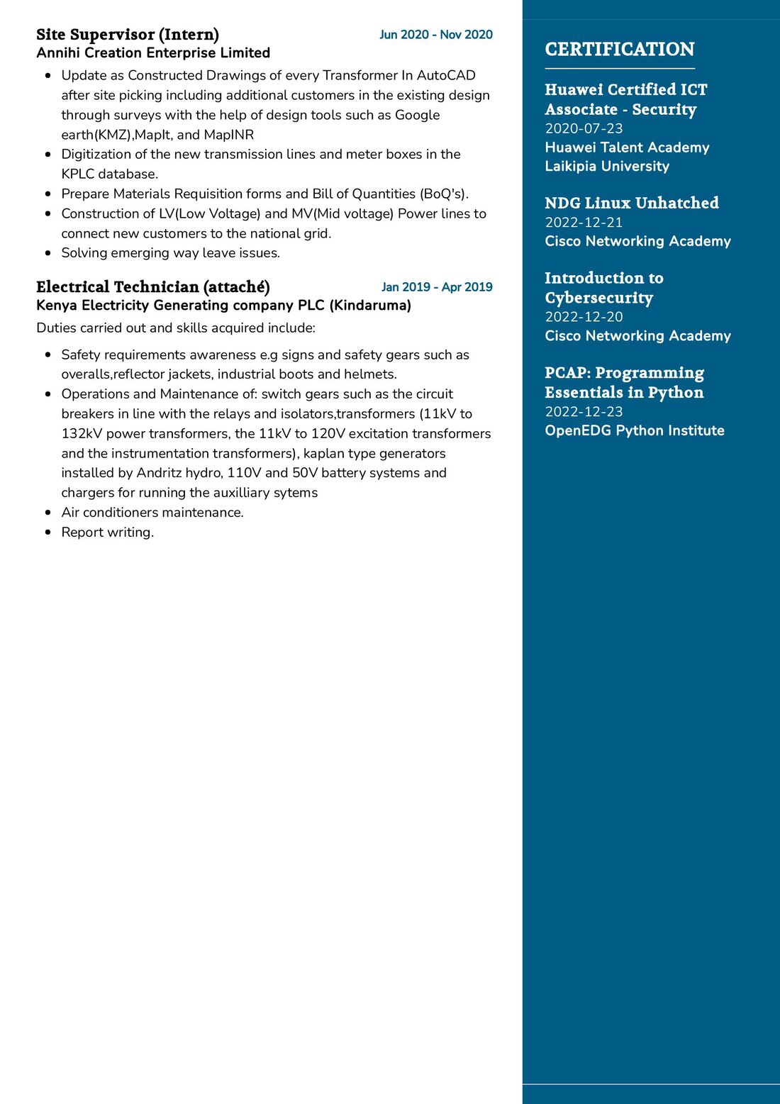 Each experience highlights your hands-on involvement in electrical engineering projects, showcasing your problem-solving skills and practical application of theoretical knowledge.