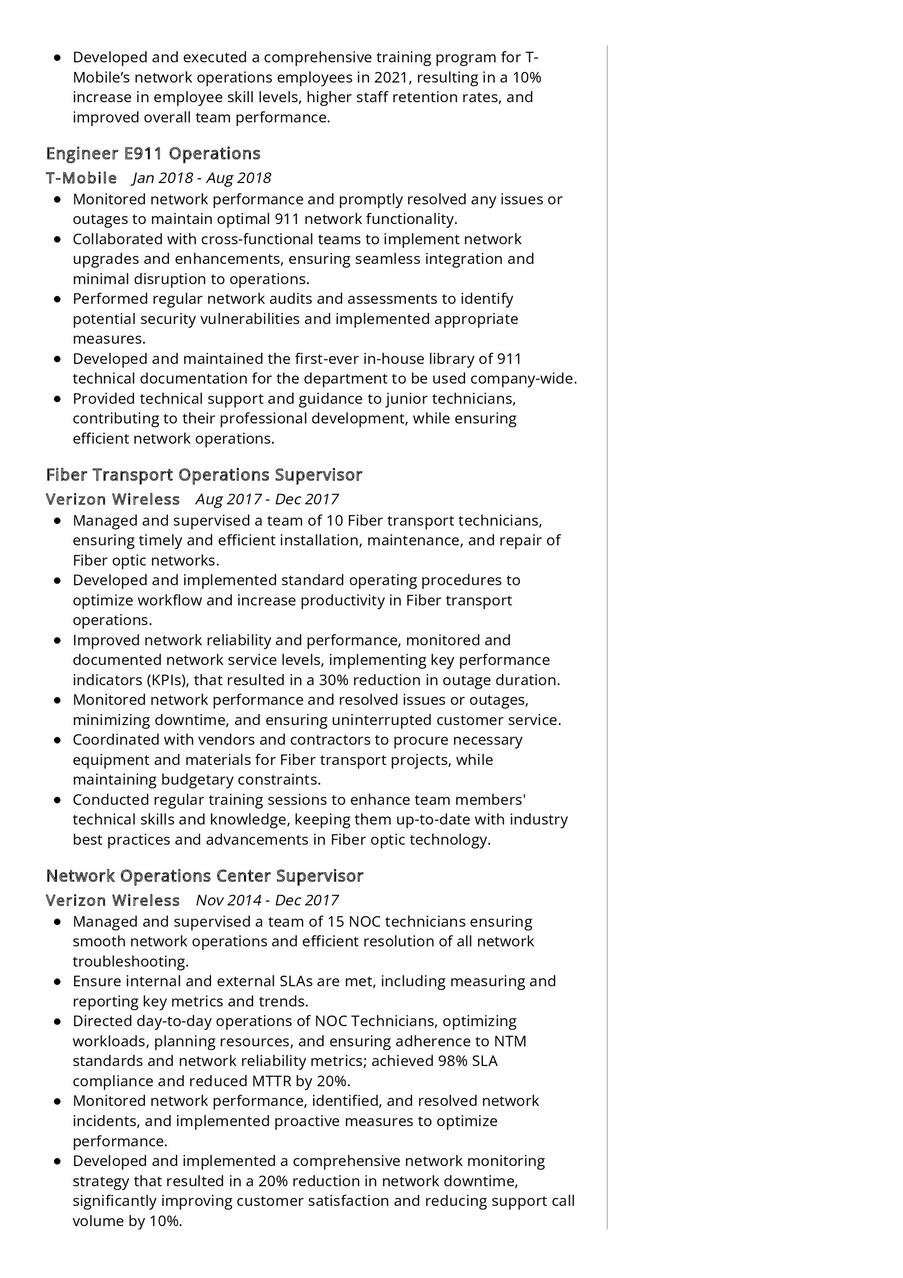 - “Led a team of NOC professionals in a high-paced IT environment, achieving a 25% reduction in network downtime through proactive monitoring and incident response.”