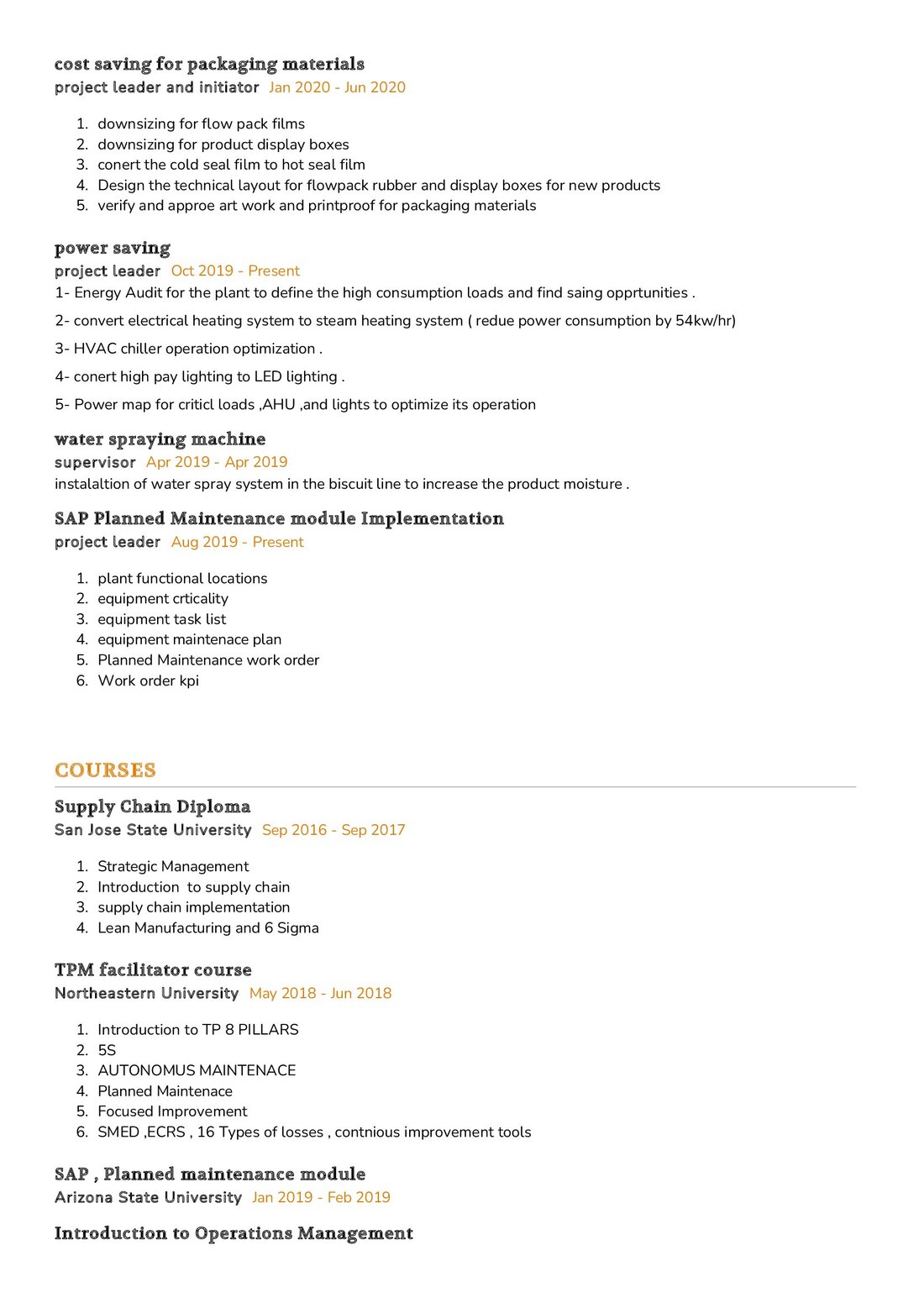 - Certified Maintenance and Reliability Professional (CMRP), a testament to your specialized knowledge in ensuring equipment reliability and performance, 2018.