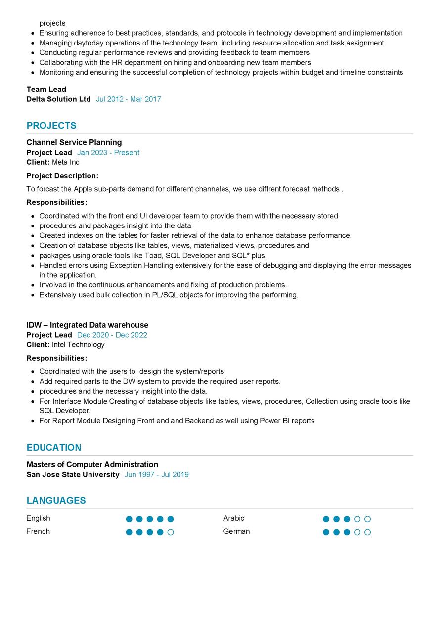 - Emphasize your leadership experience, showcasing successful projects and teams led.