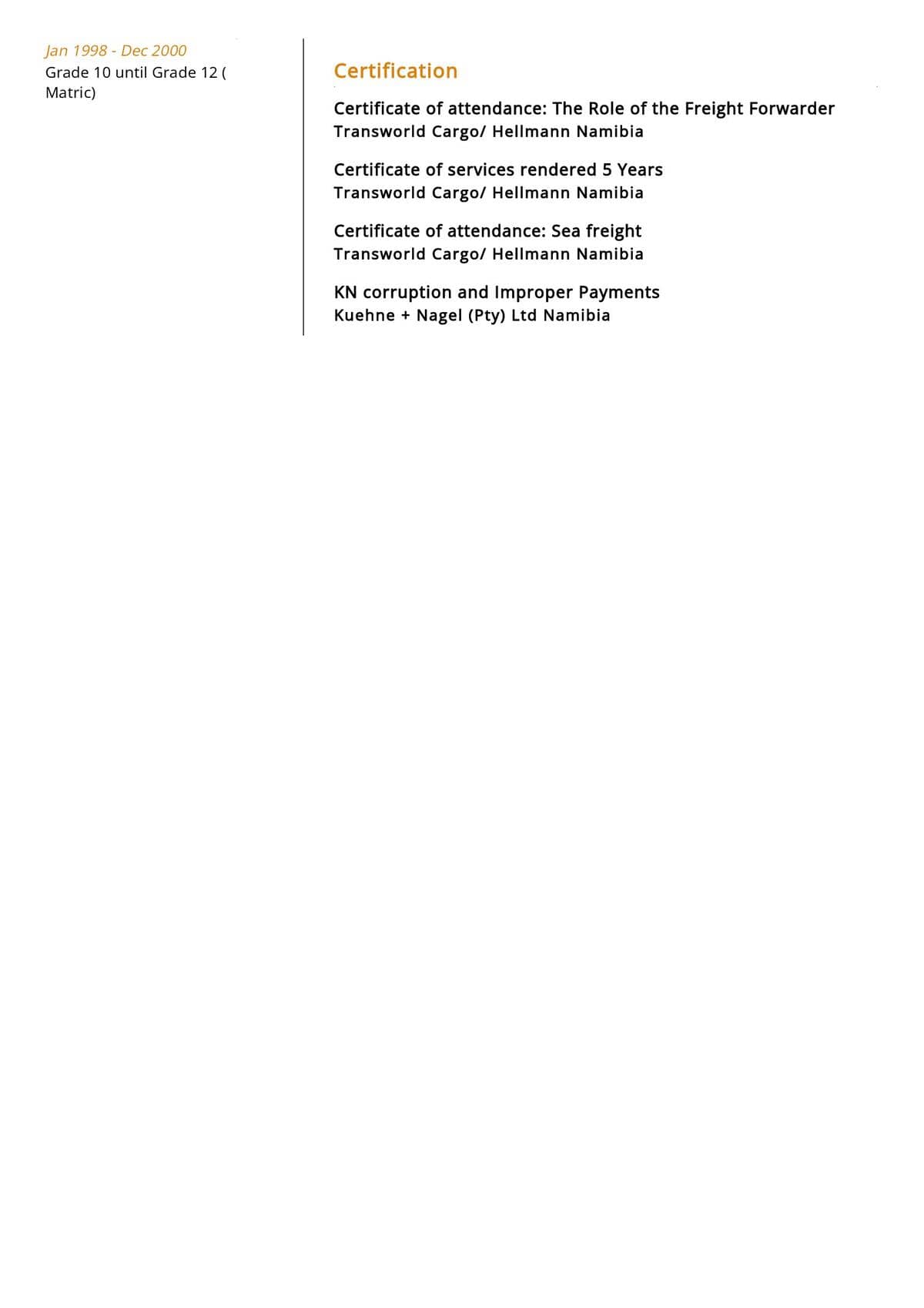 In addition to job history, include any sales and customer service experience. Highlight any sales or customer service awards or certifications that you have received. Be sure to detail any methods or strategies that you implement to increase sales or boost customer satisfaction.