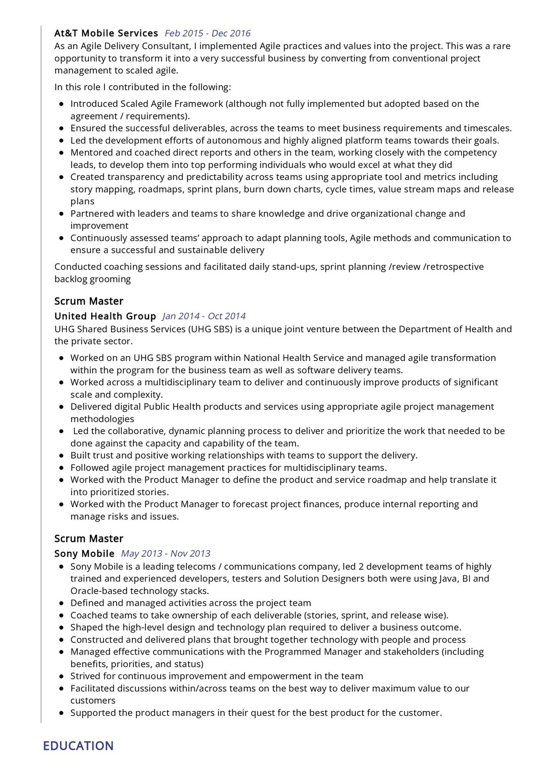 Sample Education Section for Your Scrum Master Resume