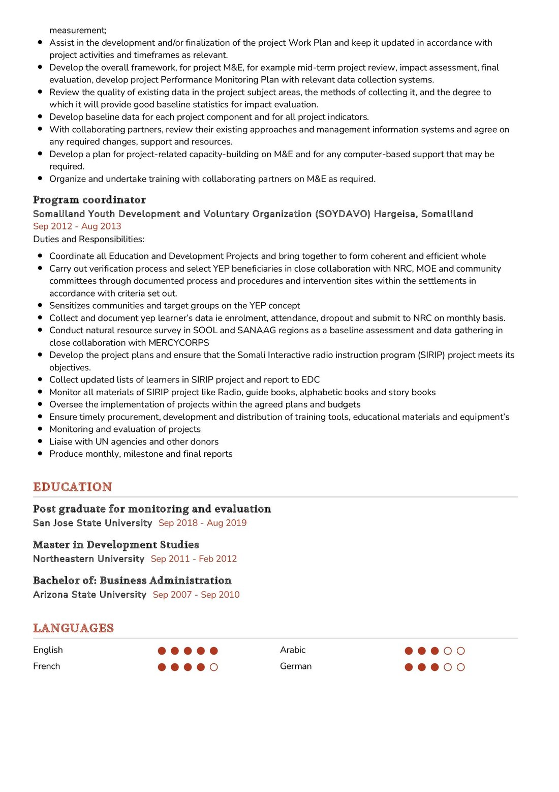 - Highlight your leadership roles in MEAL, showcasing instances where you have led teams to enhance program effectiveness.