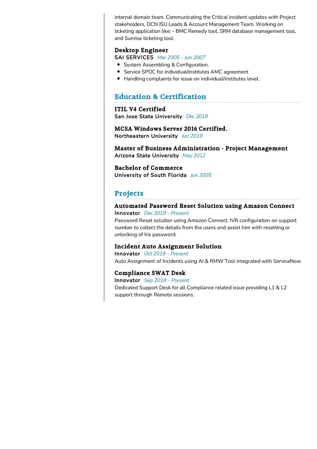 - Leading the service desk team, fostering a collaborative and innovative work environment.