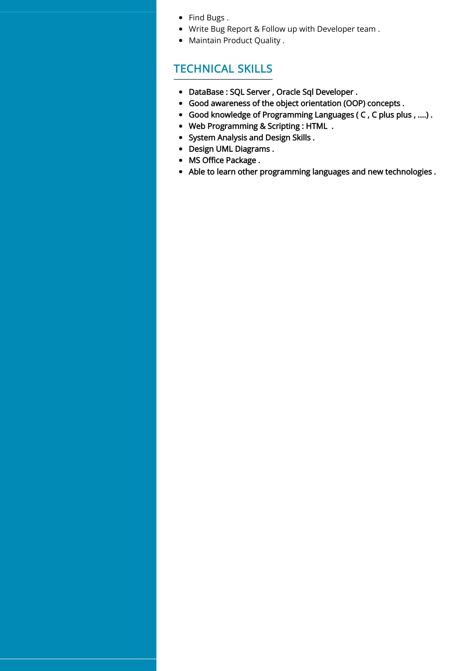 - A list of the software testing tasks and the tools the applicant has worked with; this should include details about the type of software testing the applicant has conducted, such as unit testing, functional testing, system testing, and regression testing.