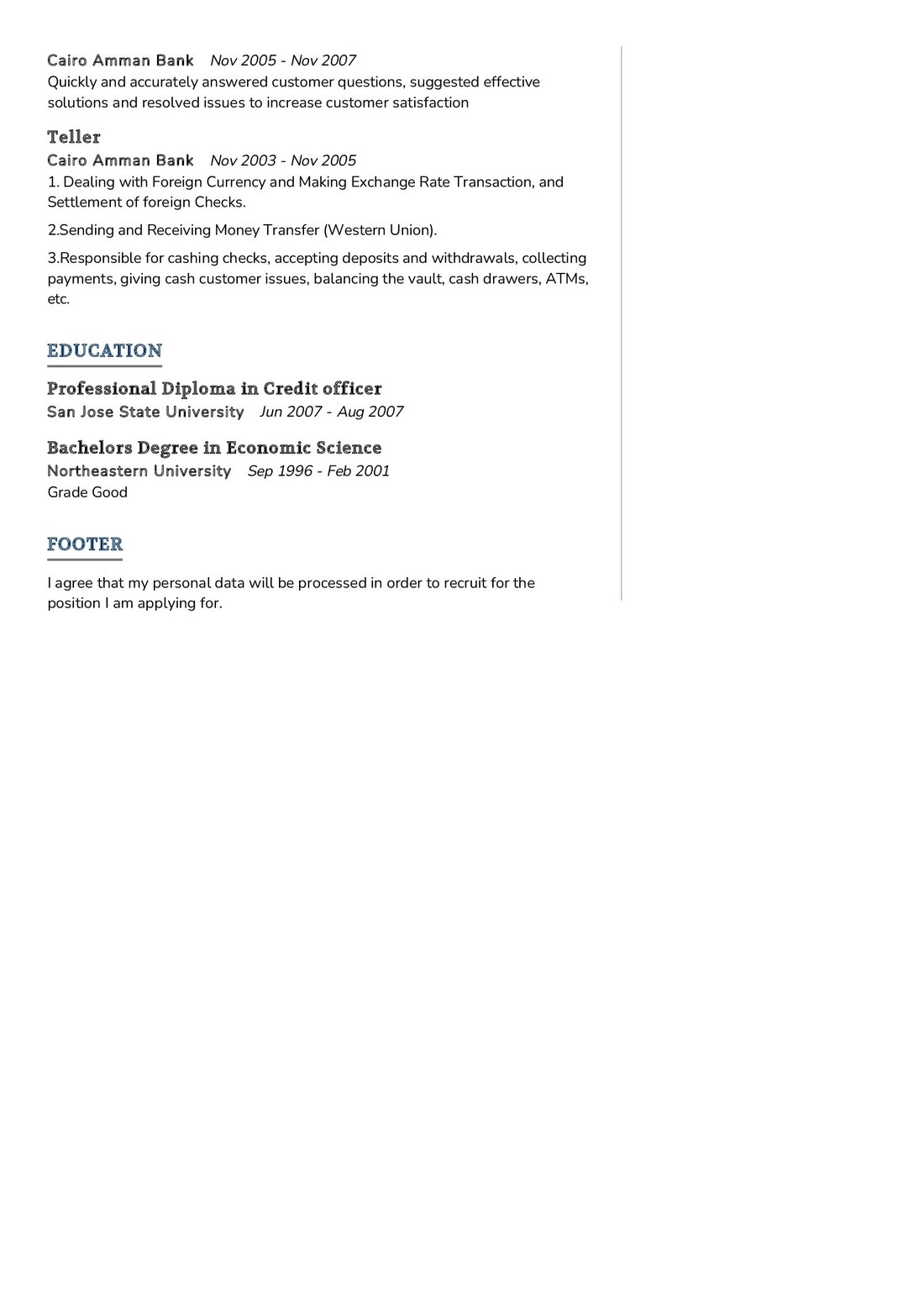 • In the position of head teller, you have to communicate with customers, Good customer service skills are needed in this position.