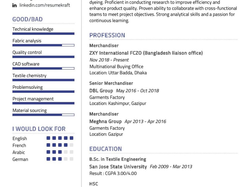 Each point in your experience section is a chapter in your career story, showcasing your journey in the vibrant world of textiles.