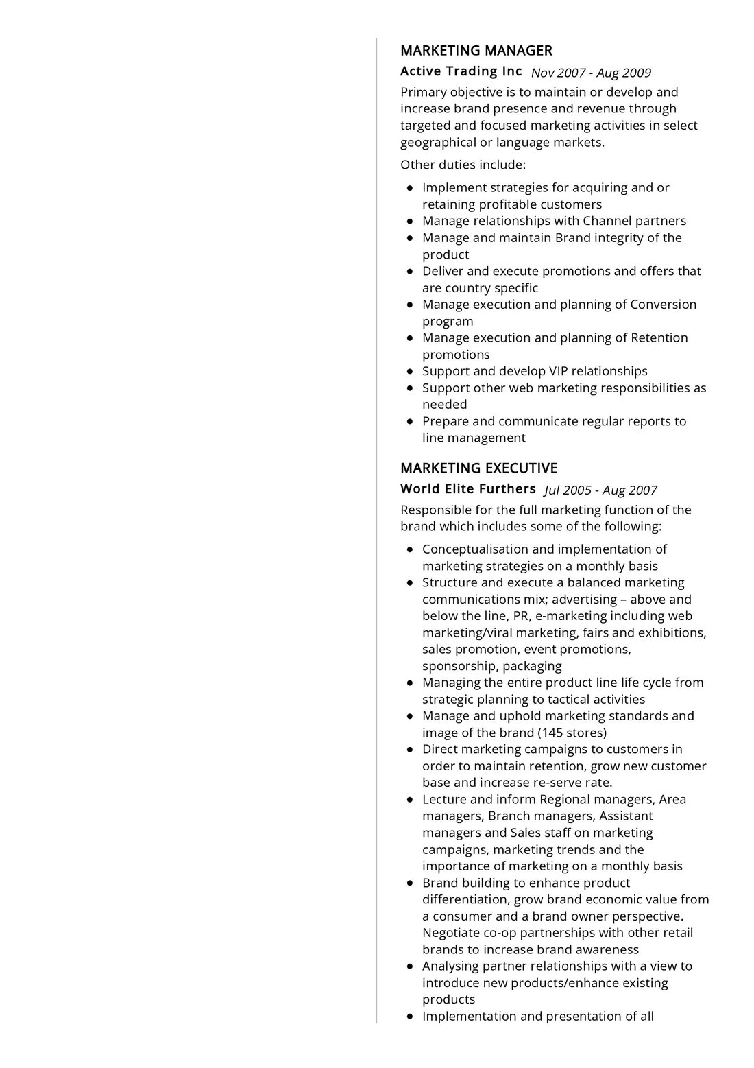 - Include quantifiable achievements, using metrics to demonstrate the effectiveness of your marketing strategies.