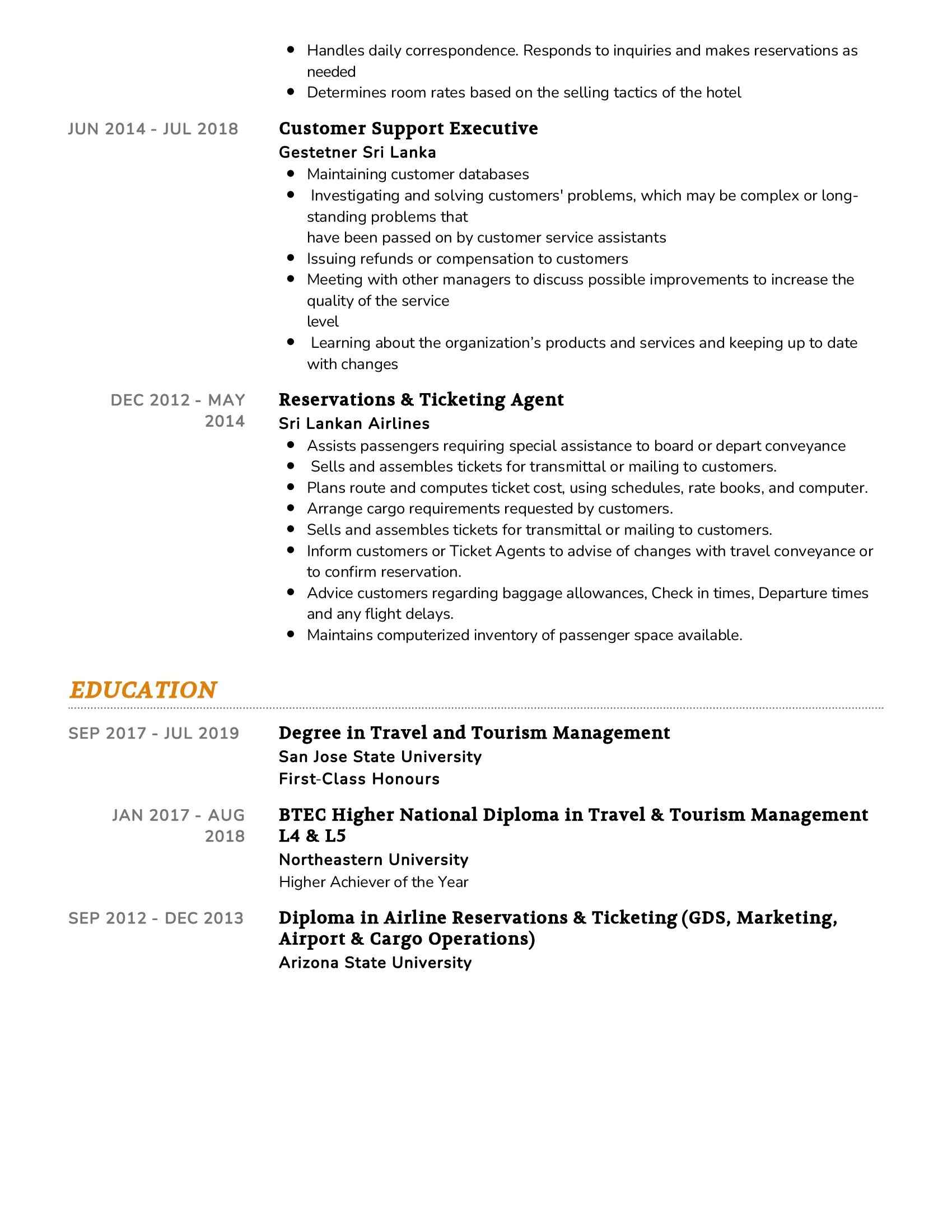 - Bachelor of Science in Travel and Tourism Management, XYZ University, a comprehensive education in the travel industry, 2015.
